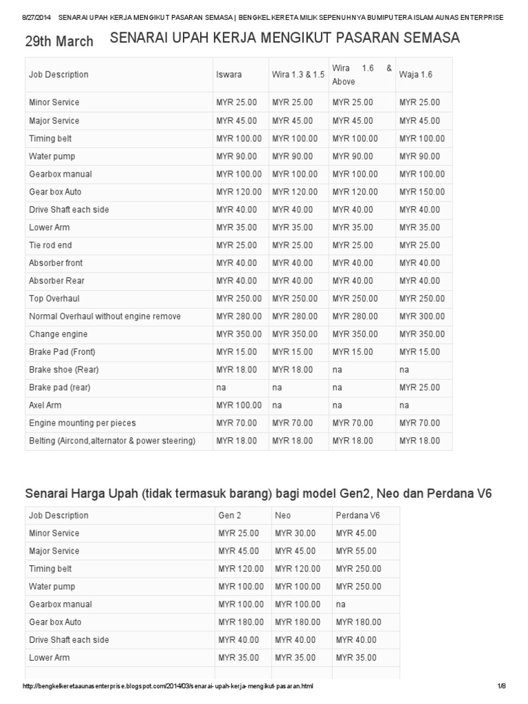 Related : Senarai Upah Baiki Kereta 2017 : A customer can buy our services directly from our online platform, for which he need to make online payment..