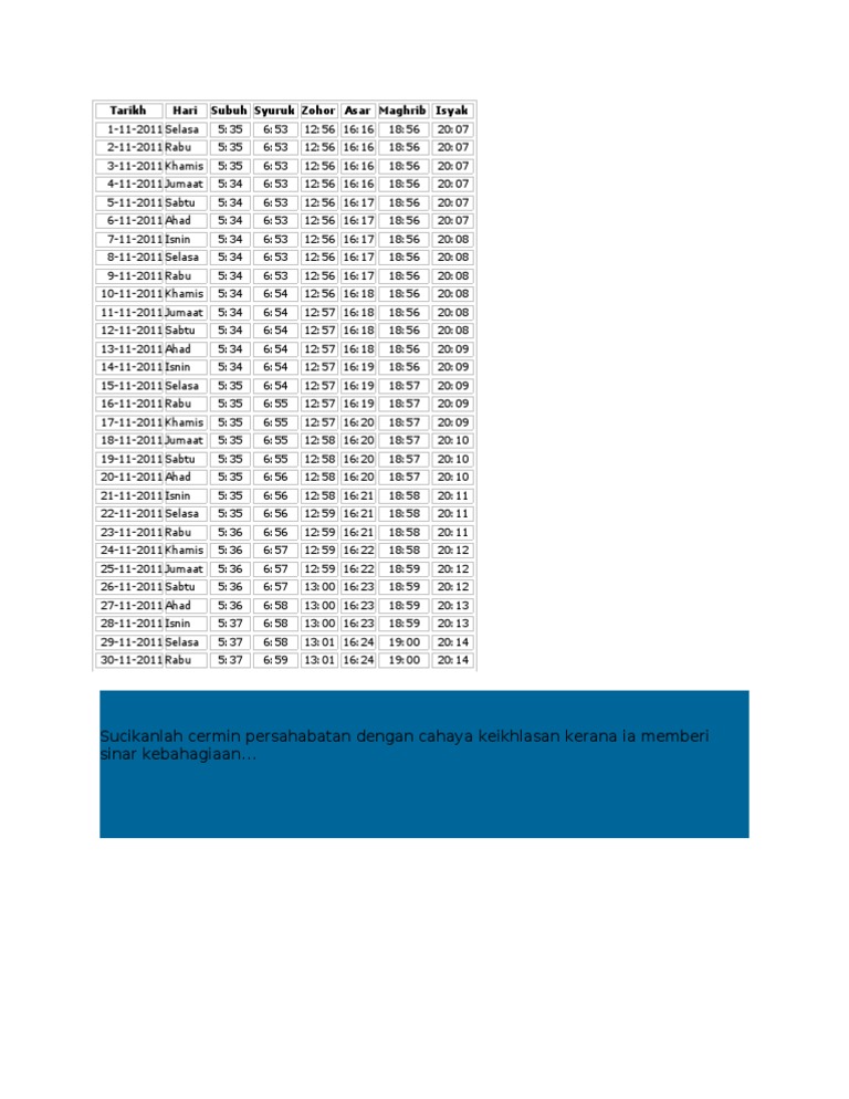 Penyusunan waktu solat fardhu telah diajarkan sendiri oleh malaikat jibrail kepada nabi muhammad s.a.w. Jadual waktu solat rawang waktu solat adalah peruntukan tempoh atau selang masa tertentu bagi masyarakat muslim menjalani syariat solat sama ada fardhu ataupun sunat. Waktu solat sila pilih negeri johor kedah kelantan melaka negeri sembilan pahang perak perlis pulau pinang sabah sarawak selangor terengganu w.p. Kuala lumpur & putrajaya w.p. Waktu solat adalah piawai bagi masyarakat muslim seluruh dunia.